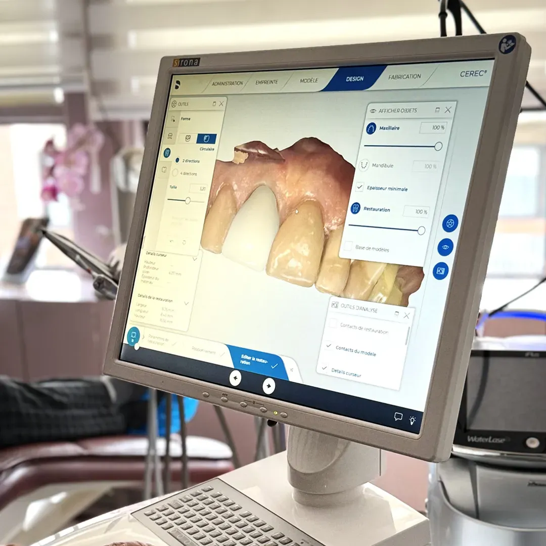 Assistée par ordinateur, cette technologie permet de concevoir et de fabriquer des restaurations de céramique performantes et durables, sur place.